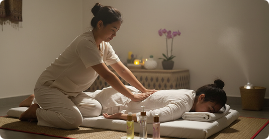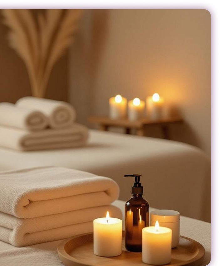 نصل إليك أينما كنتِ، لنقدم لكِ جلسات تهدّئ روحك، تُنعش جسمك، وتبرز جمالك… وكل ذلك بخدمة راقية، وقت مرن، وتعقيم كامل.